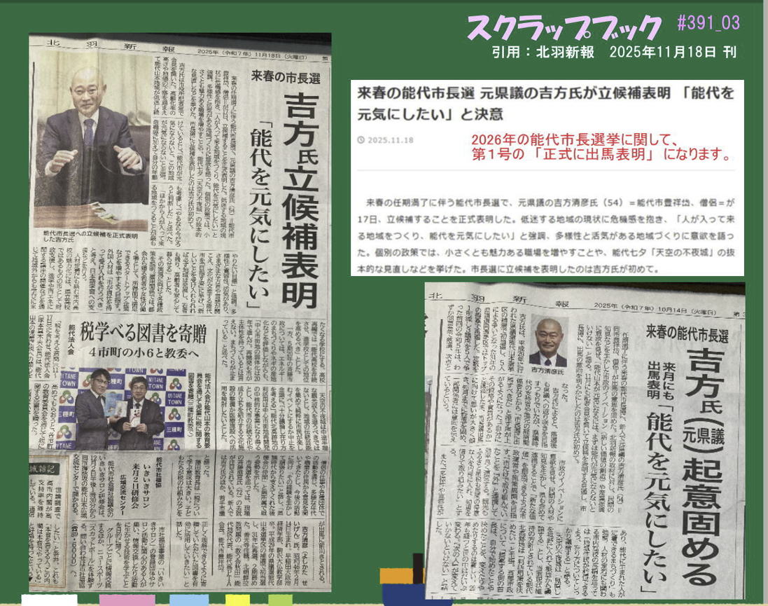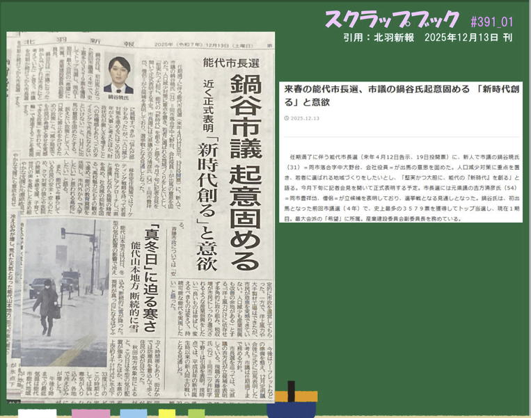 →『北羽新報 と のしろ #391』(2025年12月16日 配信)